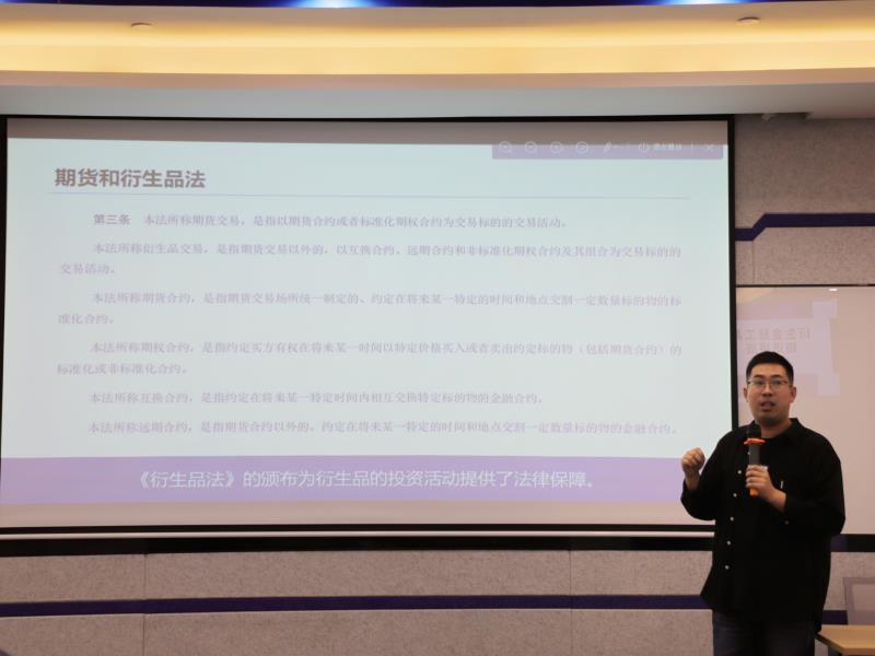 为帮助员工掌握衍生品套期保值等相关知识,明晰利用期货期权工具对冲大宗贸易的价格风险,10月11日下午,外贸公司开展衍生金融工具知识讲座,特邀弘业期货上海财富管理部副总经理季佳佳主讲,公司法审合规部及业务部相关人员参与本次培训。