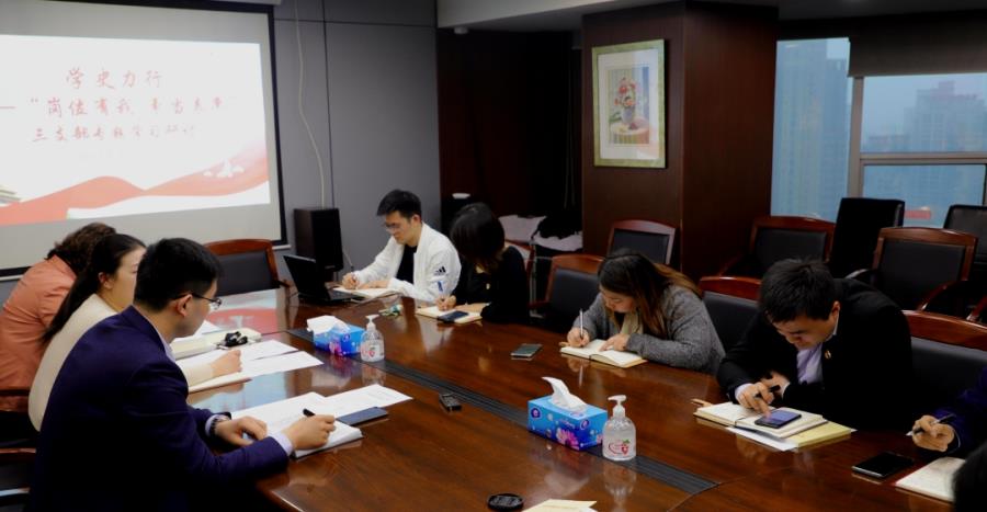 4月27日上午,公司第二支部召开学史力行——“岗位有我 争当表率”专题学习研讨,指出,习近平总书记的重要讲话,为开展好党史学习教育指明了方向、提供了遵循。要深入学思践悟,精准对标对表,进一步增强斗争精神。要初心如磐、使命担当,自身做表率,发挥埋头苦干的精神,把党史学习教育与自身岗位结合起来,切实把学习成效转化为提高工作效率、把控风险和推动公司业务高质量创新发展的实践成效,为实现集团“两高”定位贡献力量。