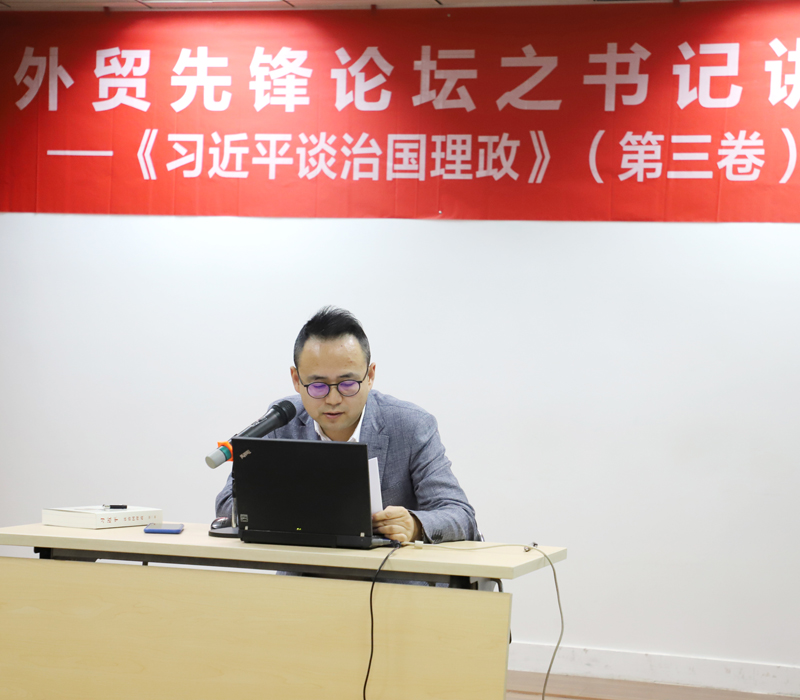 11月2日下午,外贸公司开展先锋论坛之书记讲党课活动,专题学习导读《习近平谈治国理政》(第三卷)。党总支委员、副总经理、第一支部书记谢保成领学《习近平谈治国理政》(第三卷)主要内容及其逻辑结构。