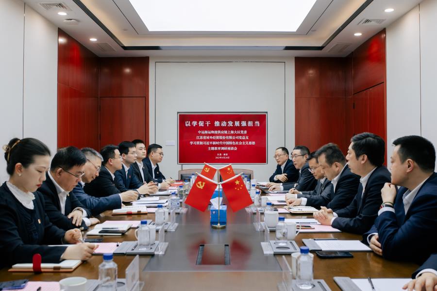 为推动党建与经营发展中心工作深度融合,4月24日,中远海运物流供应链有限公司上海大区党委书记叶宇芒一行到访外贸公司,与外贸公司领导班子成员等开展学习贯彻习近平新时代中国特色社会主义思想主题教育调研座谈会,就业务领域、党建共建等多方面合作展开探讨。