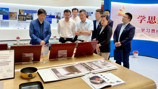 在外贸公司党总支书记、董事长、总经理李居强陪同下,傅进、周长富、郭正书等一行参观了外贸公司党建阵地、企业文化展厅、主营产品展示区。