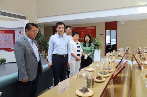 Prior to the meeting, Chairman Yang Runduo and his delegation visited the exhibition hall of the "Five Bright Pioneers" party-building initiative and the exhibition of integration, development, and practices of business at Jiangsu Provincial Foreign Trade Corporation.